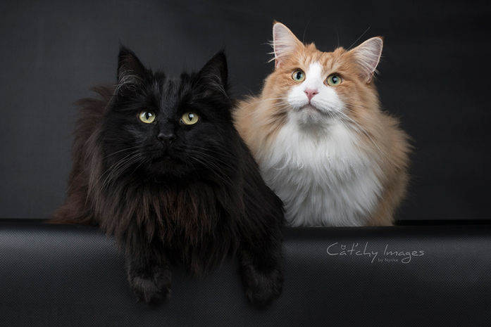 Questo gattone è dotato di un gran mantello ricco di sottopelo protetto da uno strato resistente all'acqua. I colori sono quelli tradizionali, con o senza bianco, con o senza tigratura, silver o smoke. Con due varianti molto vezzose: Amber e Light Amber